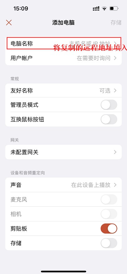 打开手机中安装好的链接软件,按图中所示填写即可。